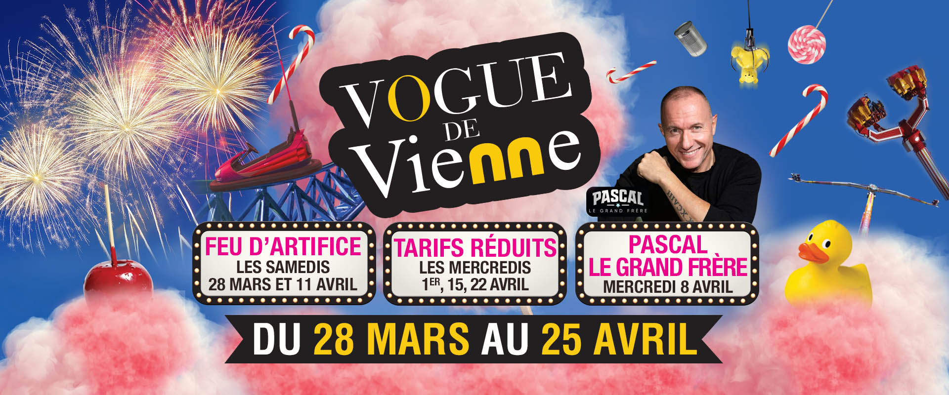 Du 28 mars au 25 avril, la Vogue de Vienne s’installe Place Simone Veil (Champ de Mars – Cours Brillier & Quai Riondet) pour plusieurs semaines de fête, de sensations et de gourmandises en plein cœur de la ville.